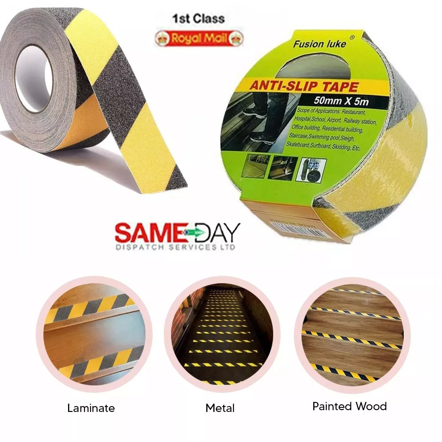 Anti-Slip Safety Tape – 50mm x 5M (Black/Yellow)