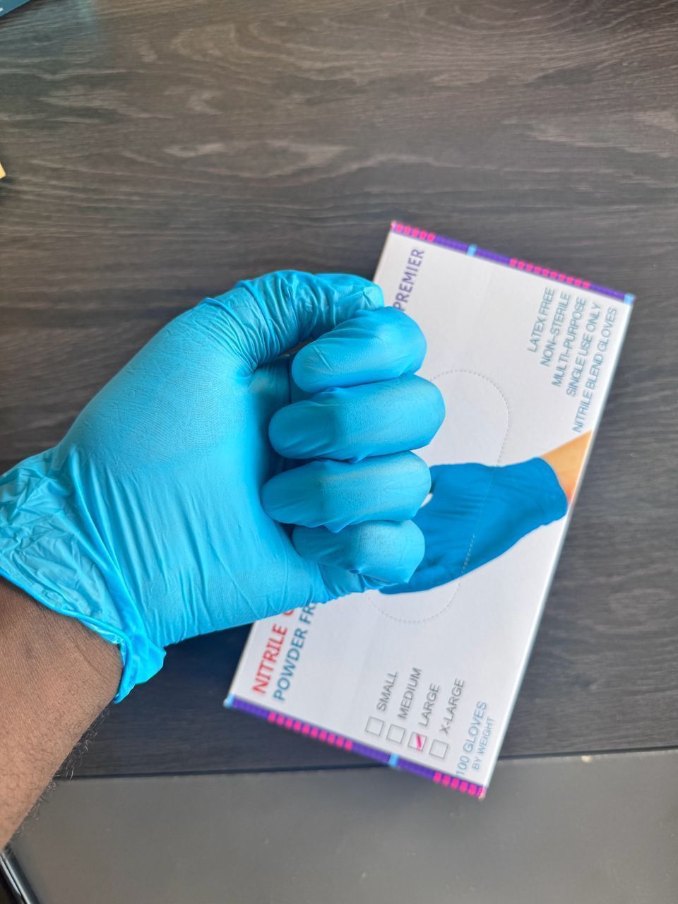 Protect your hands with durable, latex-free nitrile blend gloves, designed for safe, hygienic handling in cleaning, food processing, labs, clinics, and industrial environments. These gloves are powder-free, non-elastic, and disposable, ensuring a snug fit and reduced risk of allergies or contamination.