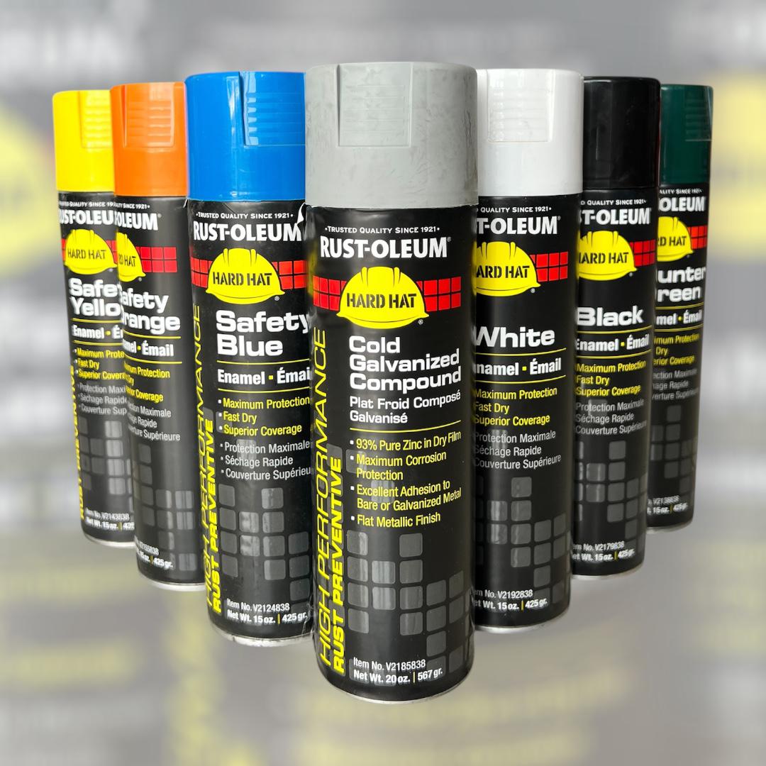 Hat Spray Paint – Safety Yellow, Safety Blue, Black, White, Hunter Green & Cold Galvanized Compound | Industrial Anti-Rust Coating
